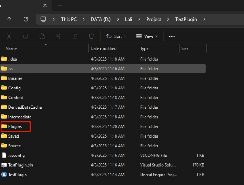 Navigate to the Plugins folder in your project directory. If the folder does not exist, create a new folder called Plugins.