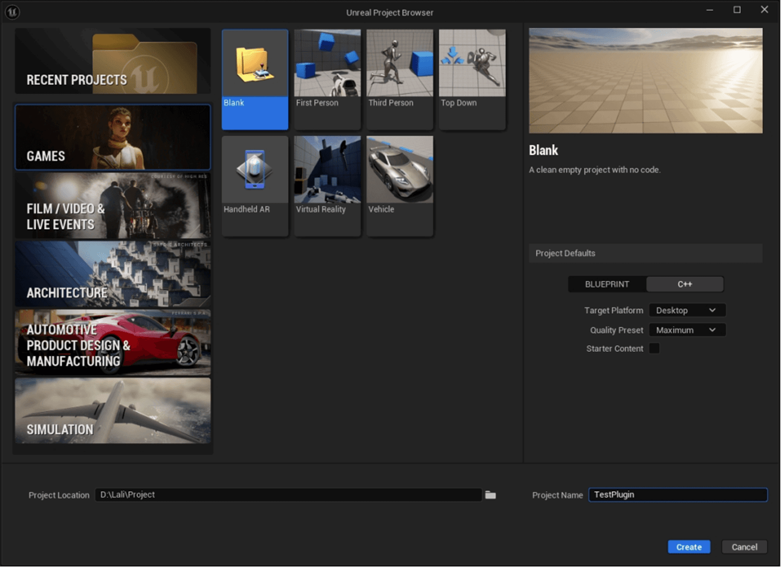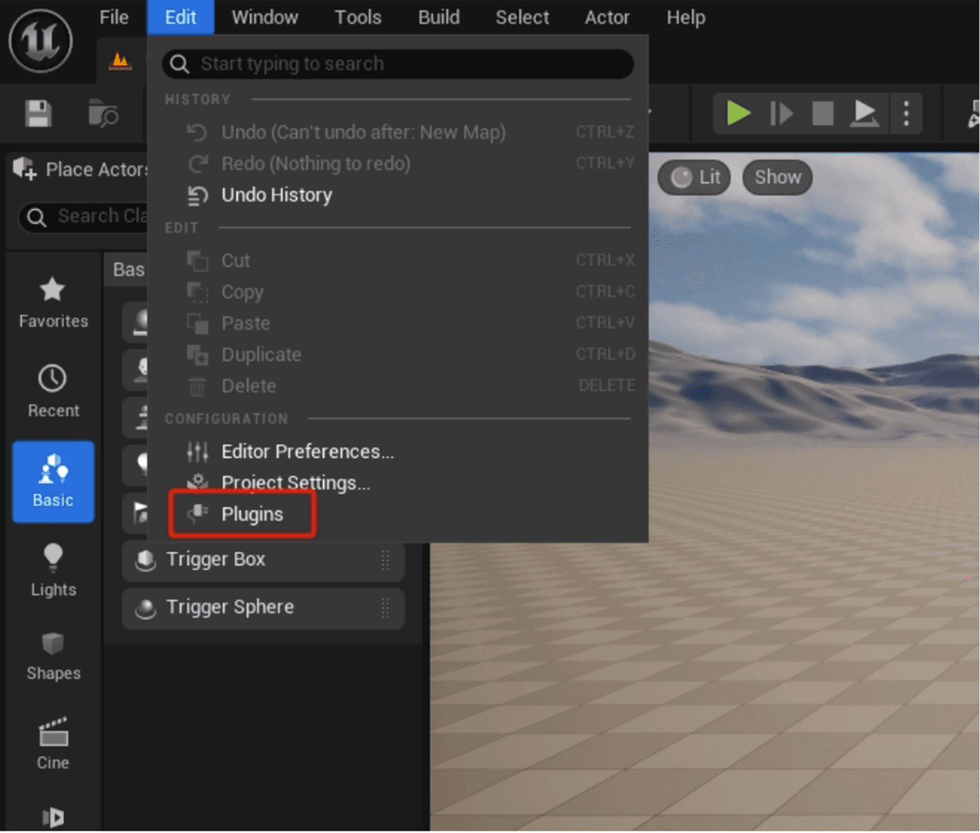 Create or Open an exisiting UE Project