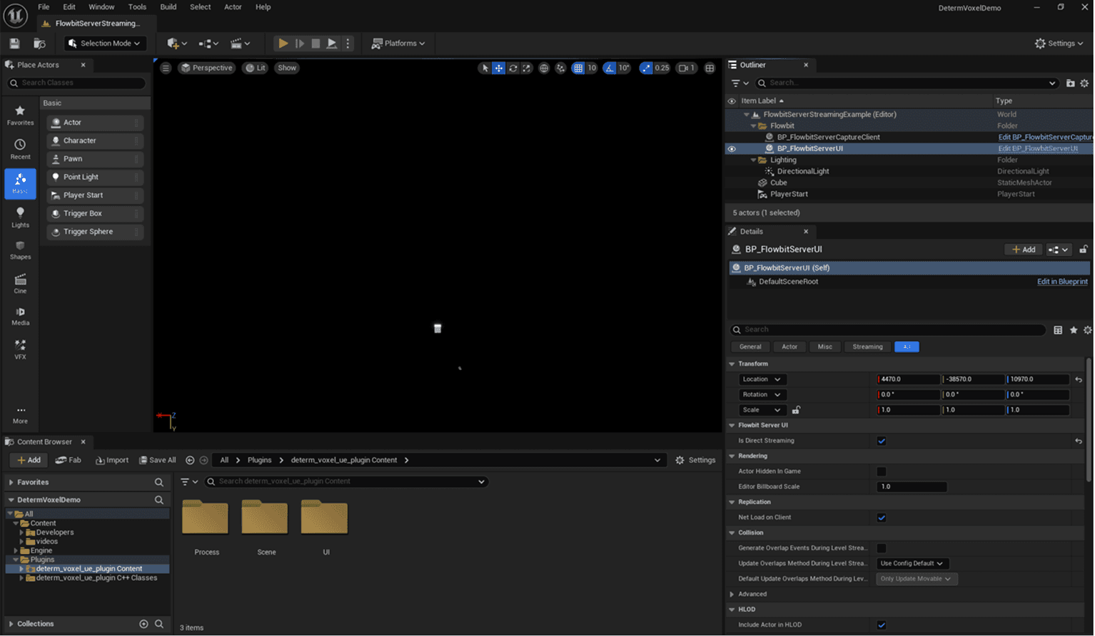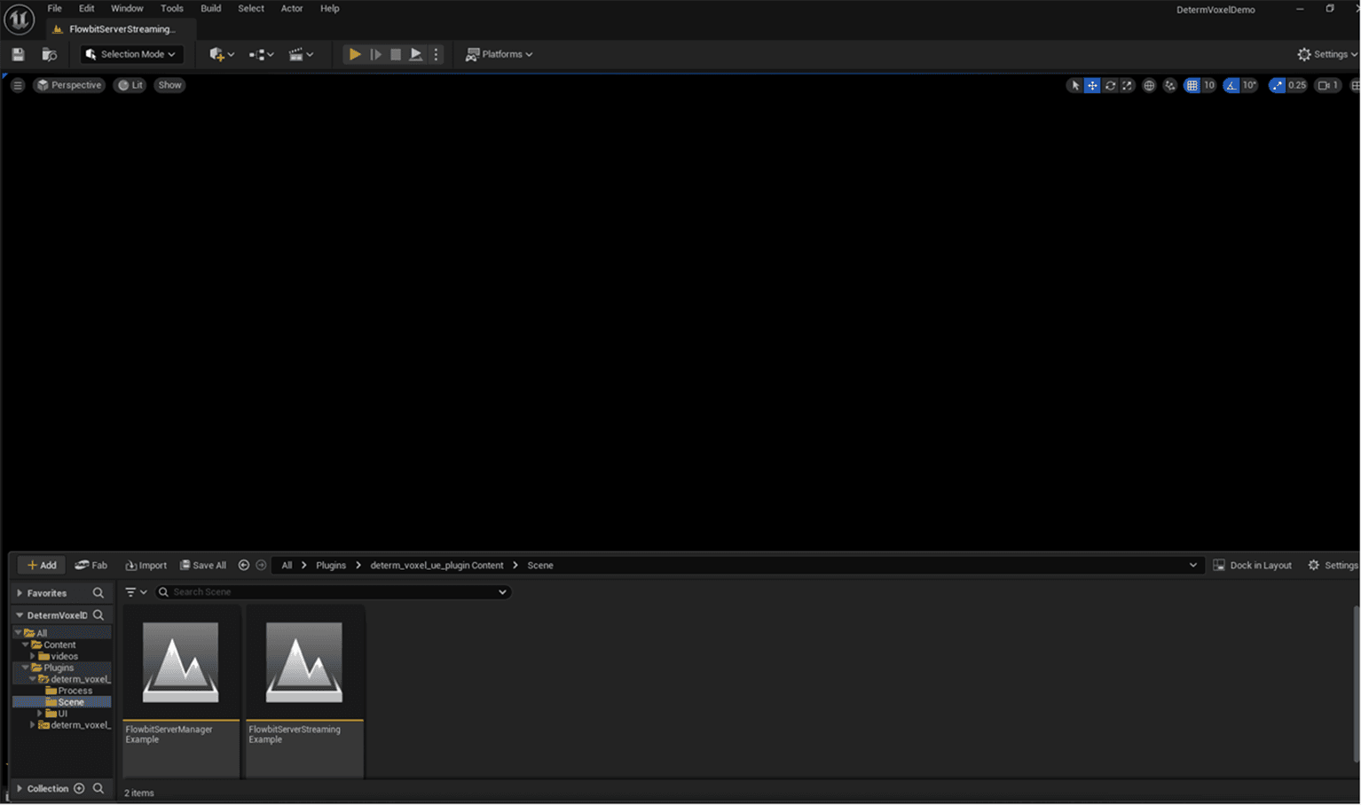 Navigate to determ_voxel_ue_plugin and open FlowbitServerManagerExample in the Scene folder