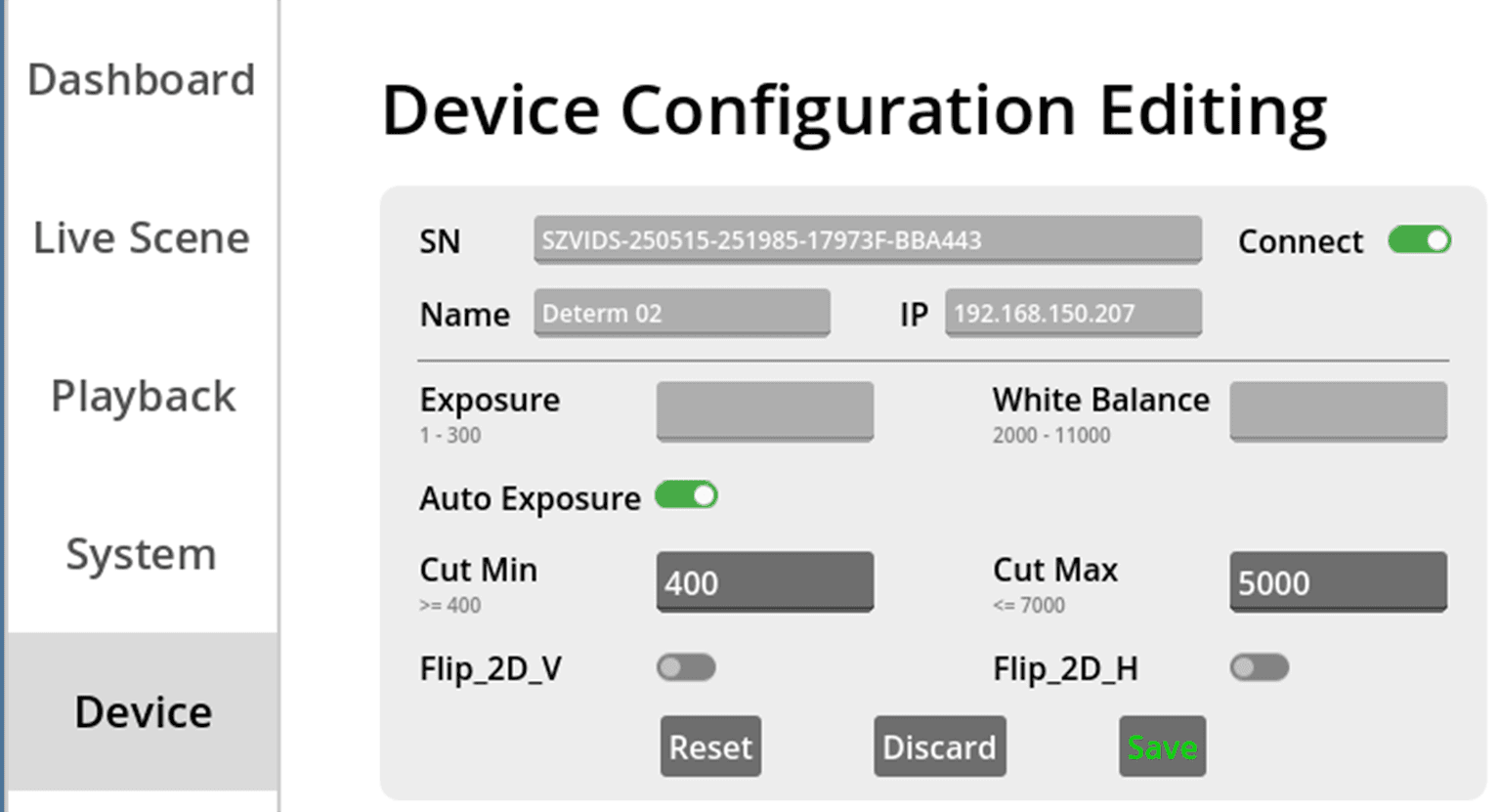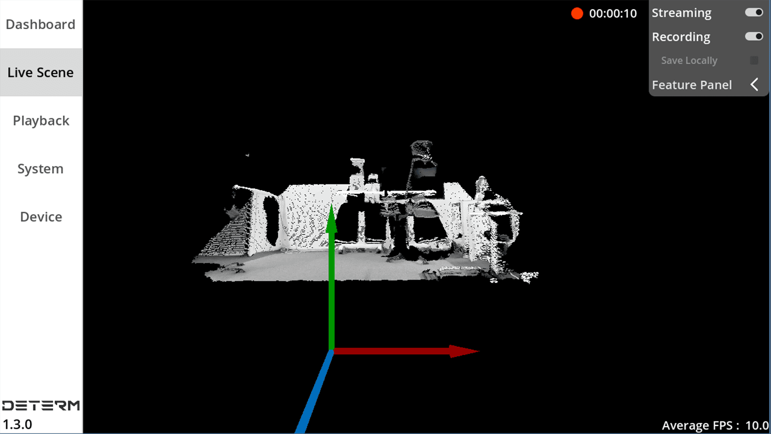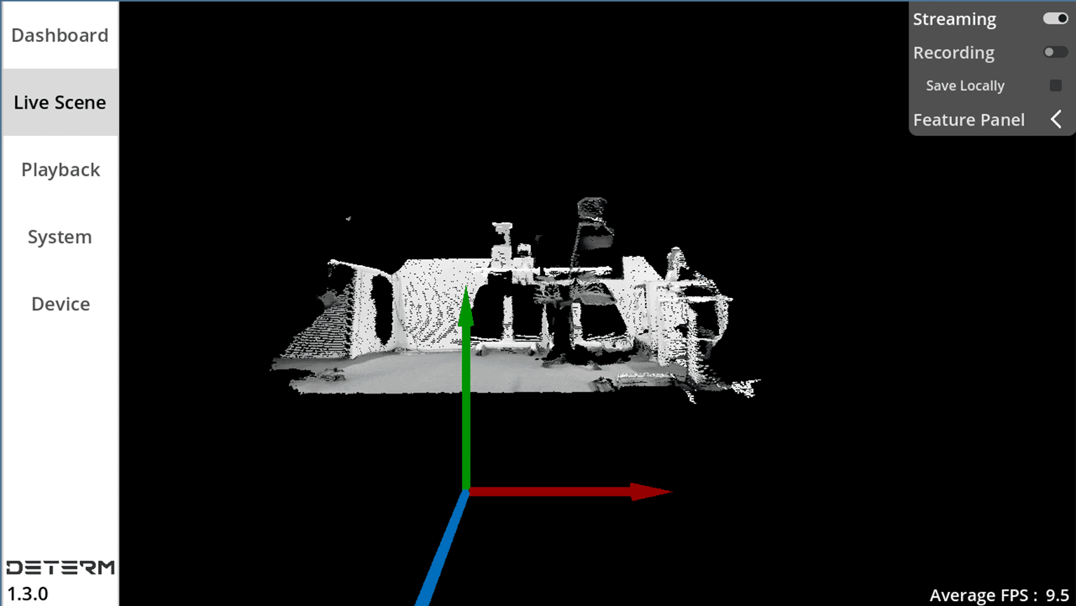 Option to adjust system configuration settings: Record Video From Server Side, Point Size, Target FPS, Device Status Detection Interval and Camera Start Delay.