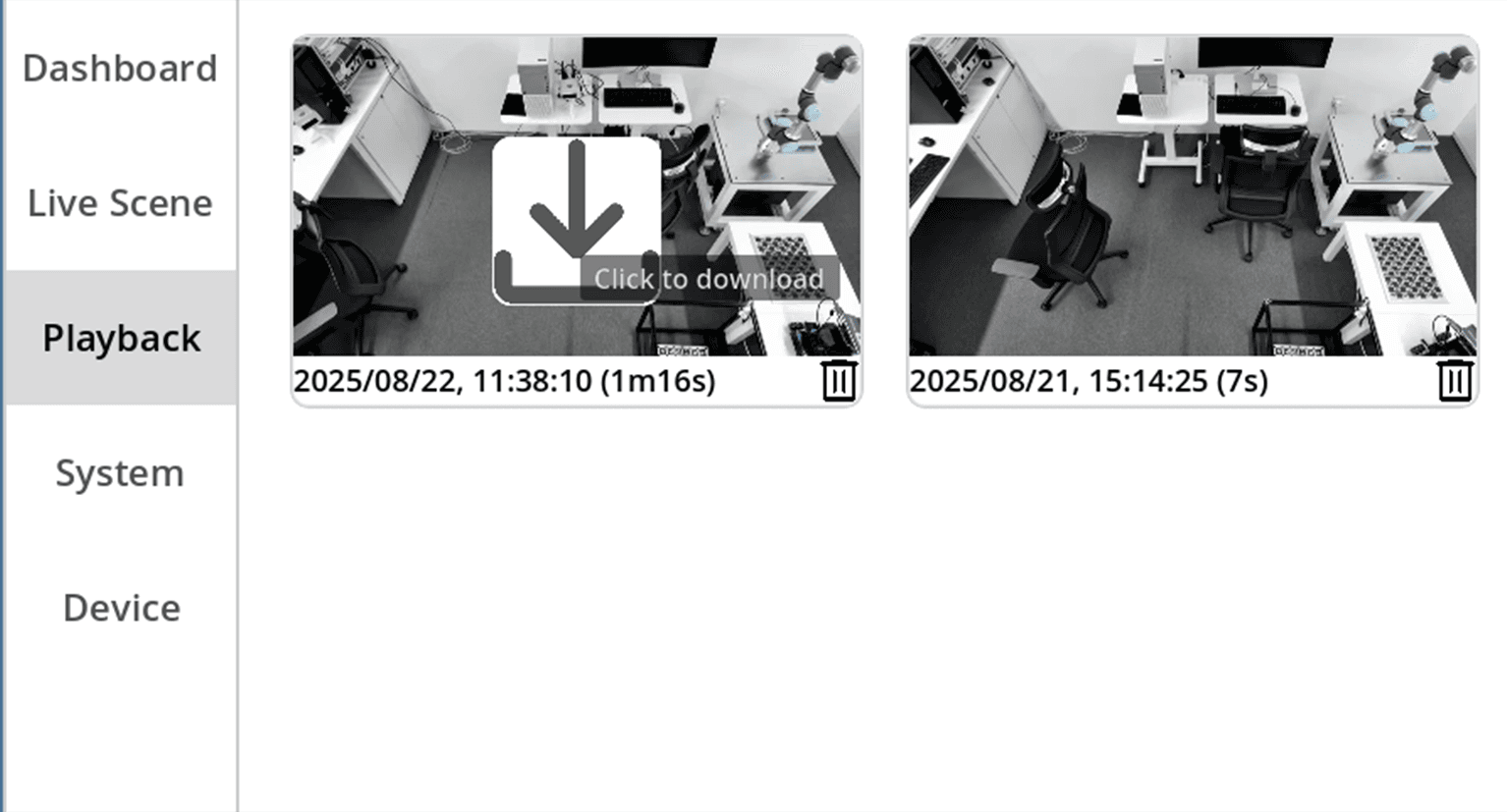 Record the 3D scene ➡️ Switch to “Playback” Panel ➡️ Click the "download" button ➡️ Double click index image to playback