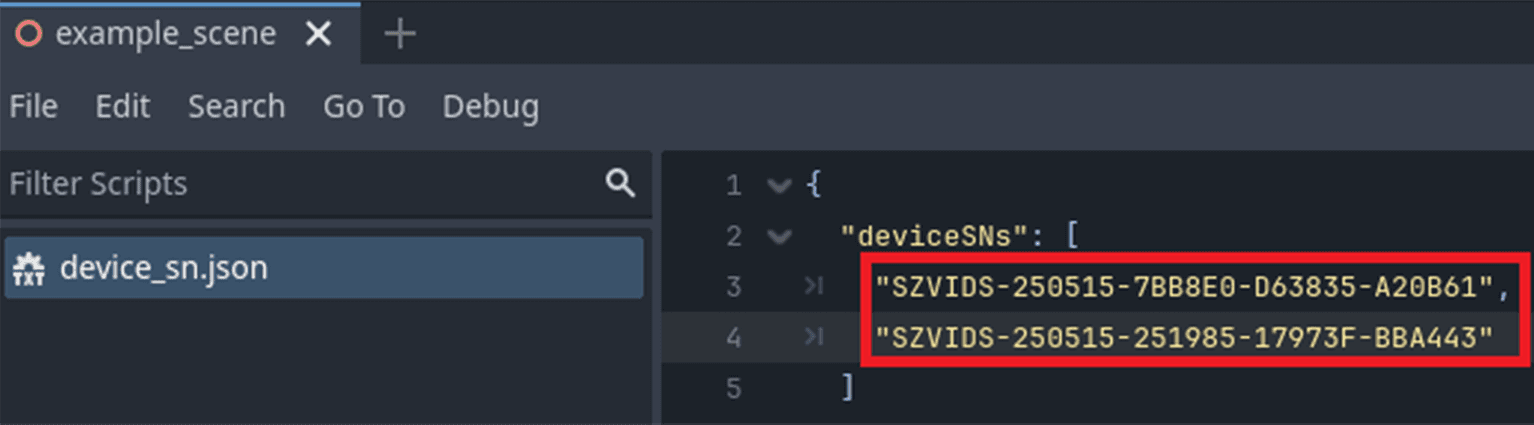 Add client device’s SN to device_sn.json file